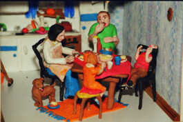 Material: Knetgummi, Teppich, Tapete, Gips, Draht