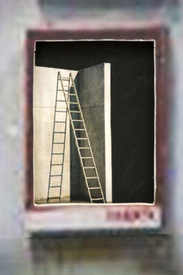 Die in diesem Ensemble eingelassenen Collagen zitieren Stilmittel des formalen Aufbaus mittelalterlicher Altarbilder, z.B. kunstreiche Draperien, den Blick auf Landschaften oder architektonische Strukturen. Doch hier fehlen die üblicherweise zentralen Heiligenfiguren. Die Bühne ist leer. Hat der bzw. das Heilige seinen Platz verlassen?