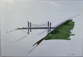 übers Bächlein, 2010, Entwurf, Mischtechnik auf Papier, 26 x 18 cm