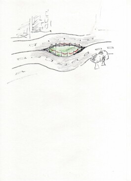 ohne Titel, 2010, Entwurf (Installation), Fineliner und Buntstift auf Papier, 26 x 18 cm