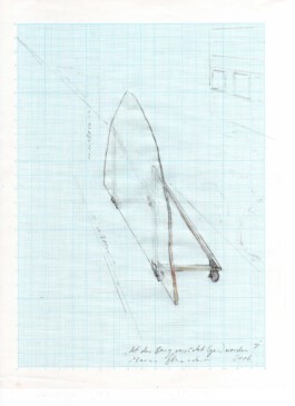 Skala, 2008, Entwurf (Objekt: 2 Leitern, 1 Fahrgestell), Bleistift auf Millimeterpapier, 29 x 21 cm
