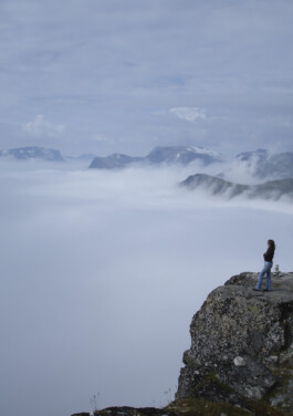 Eine Route durch Norwegen haben wir anhand einer Sammlung norwegischer Postkarten mit Gebirgslandschaftsmotiven aus den 60er und 70er Jahren festgelegt, die wir auf dem Bremer Flohmarkt gekauft und für den, vor unserer Reise entstandenen Film Ansichten, verwendet hatten. Die Fotoserie Stationen dokumentiert – im Gegensatz zur vorangegangenen virtuellen Reise im Film – das »echte« Aufsuchen der Motive. Das Resultat des Unterfangens, jene Idylle bildgetreu wiederzufinden, ist die Erkenntnis, dass jede Ansicht immer nur Möglichkeit ist, abhängig von vielfältigen Faktoren und nicht zuletzt vom Standpunkt des Betrachters. Ansichtskarten sind nicht einfach Fotografien; auf ihnen wird Landschaft immer mehr oder weniger gelungen als »Idyll«, als »unberührtes Paradies« inszeniert. Gerade das am natürlichsten Wirkende ist künstlich. Hinter den Kulissen sind Natur und Kultur keineswegs Gegensätze.